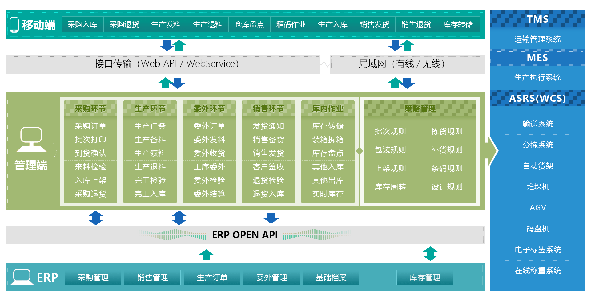 中科華智WMS系統,以實用、高效、便捷、經濟的建設方式為原則,實現企業在倉儲物流各種業務環節的連通,廣泛應用于裝備制造、機械加工、汽車零配件、食品加工、服裝、物流等多個行業。系統圍繞采購、生產、銷售、庫內作業等所有的業務環節,幫助企業對原材料、輔料、備件、半成品、成品進行精細化的管理,系統結合多年業務沉淀經驗,嵌入最優的解決方案。系統支持智能化立體倉庫的無縫銜接,能有效協調各種物流設備(輸送機、堆垛機、穿梭車以及機器人、自動導引小車等)之間的高效運行。同時通過物聯網、云計算、邊緣計算等技術應用,實現企業內部倉庫、外部倉庫、以及業務伙伴(供應商、客戶)之間的業務協同和數據互聯,助力企業打造智能化的倉儲物流信息化平臺。